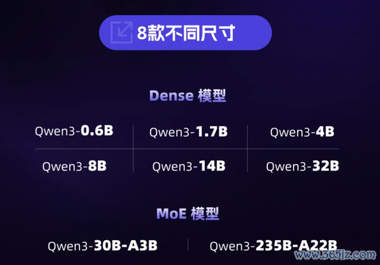 二是提供8种参数大小的模型。千问3提供了8款不同尺寸的丰富的模型版本,包含2款30B、235B的混合专家模型,以及0.6B、1.7B、4B、8B、14B、32B等6款稠密模型,每款模型均斩获同尺寸开源模型SOTA(最佳性能)。这为本地测试与科研、手机端侧应用、电脑或汽车端、企业落地、云端高效部署等不同场景与任务提供了能够满足要求的尺寸模型股票配资世界,最大程度平衡性能与成本。